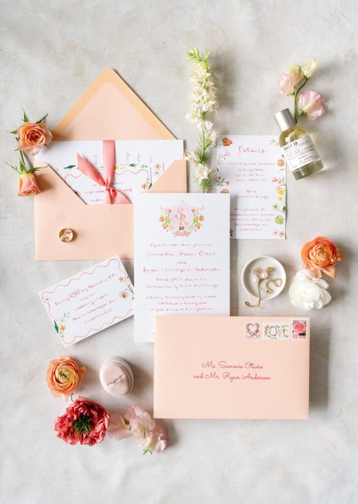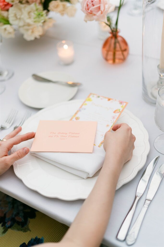 The custom made watercolor stationery by Anna Schwartz tied in perfectly with the color scheme — our favorite part, the crest featuring the couple’s dog Rocco.