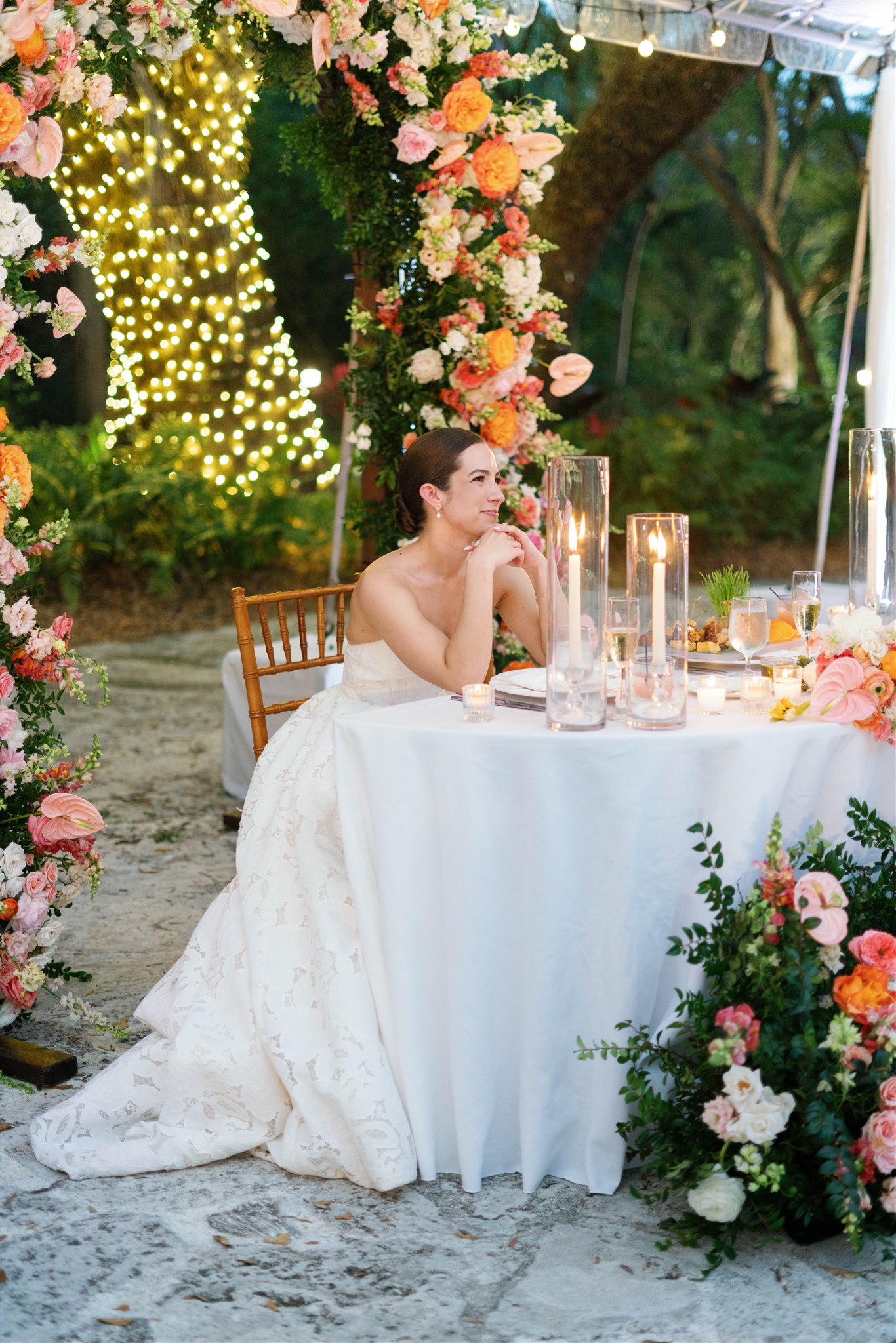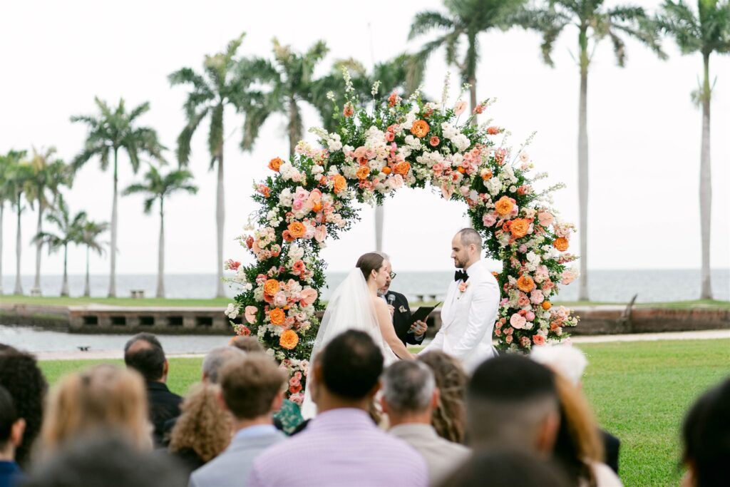 The Andersons tied the knot at the exquisite Deering Estate of Miami, with a ceremony overlooking the bay. The design was masterfully created by Summer Nicole Events, who brought softness to the Estate’s unique architecture, by choosing blush, peach and pastels blooms.